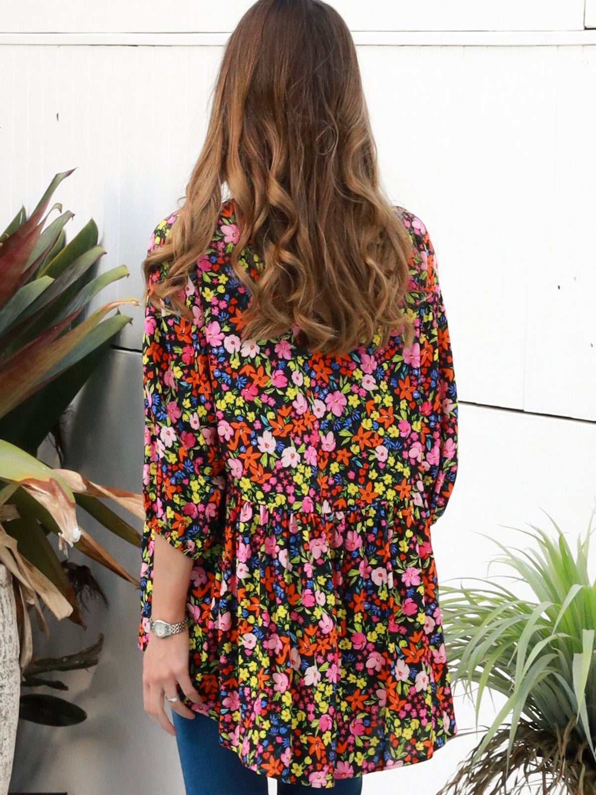 Made from 100% rayon, the fabric is soft & breathable, it's the perfect oversized, relaxed fit. Featuring a V neckline, button up front with lace detailing and elastic cuff sleeves. Please note this fabric will shrink by 5% after the first wash.